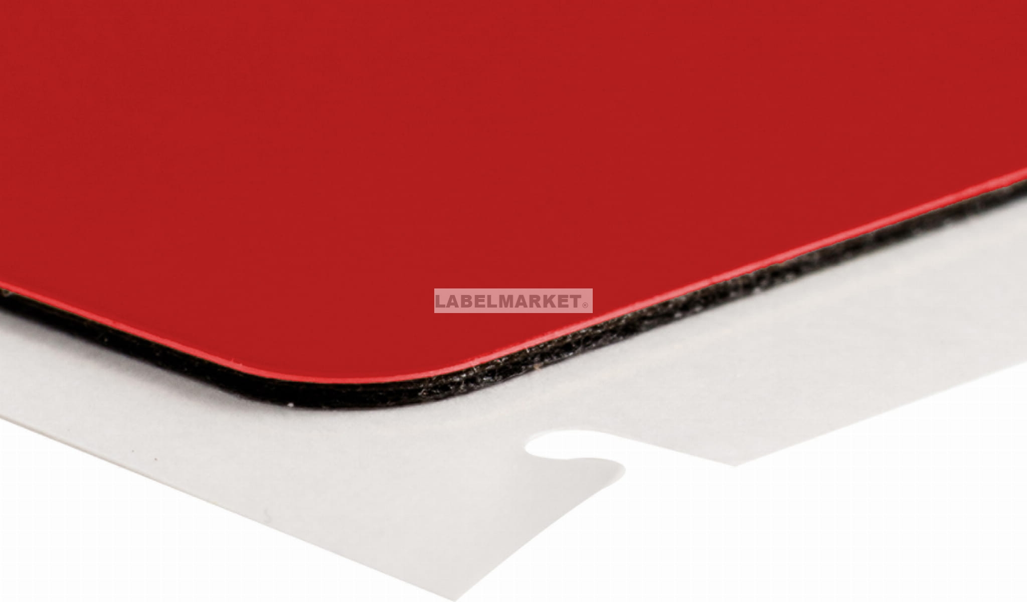 - Poliestrowa etykieta o wysokim połysku, wypukła, razem z maksymalnie agresywnym klejem (łączna grubość 0,65mm)