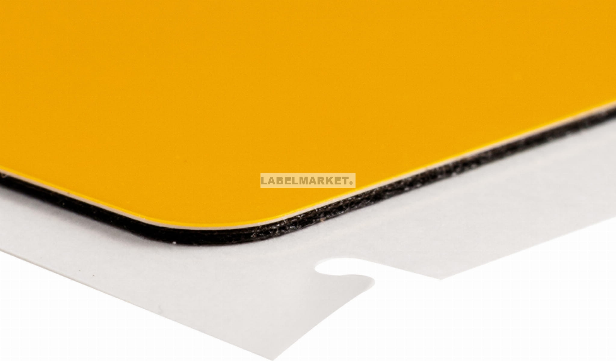 - Poliestrowa etykieta o wysokim połysku, wypukła, razem z maksymalnie agresywnym klejem (0,65mm)
