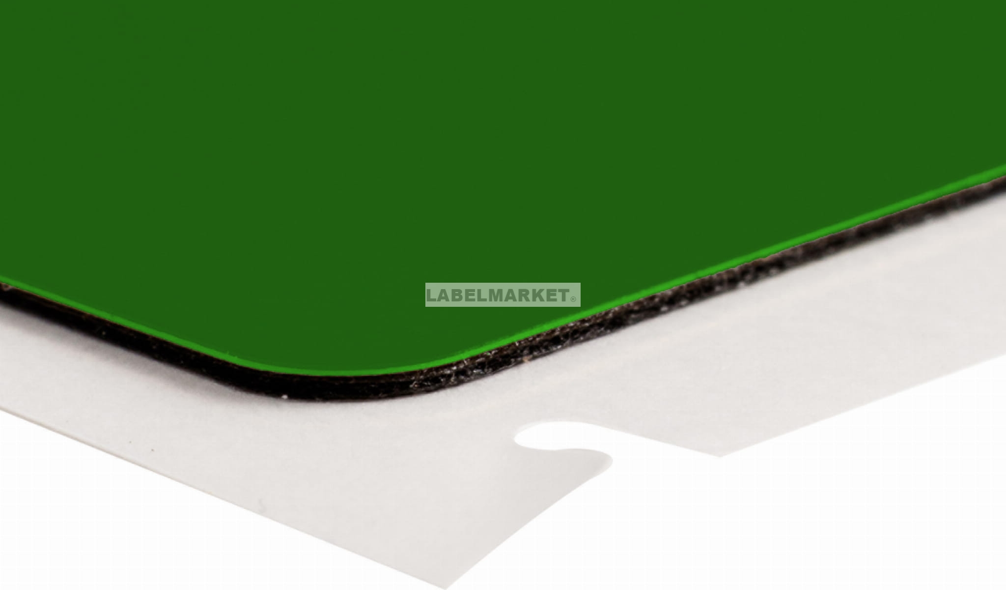 - Poliestrowa etykieta o wysokim połysku, wypukła, razem z maksymalnie agresywnym klejem (0,65mm)