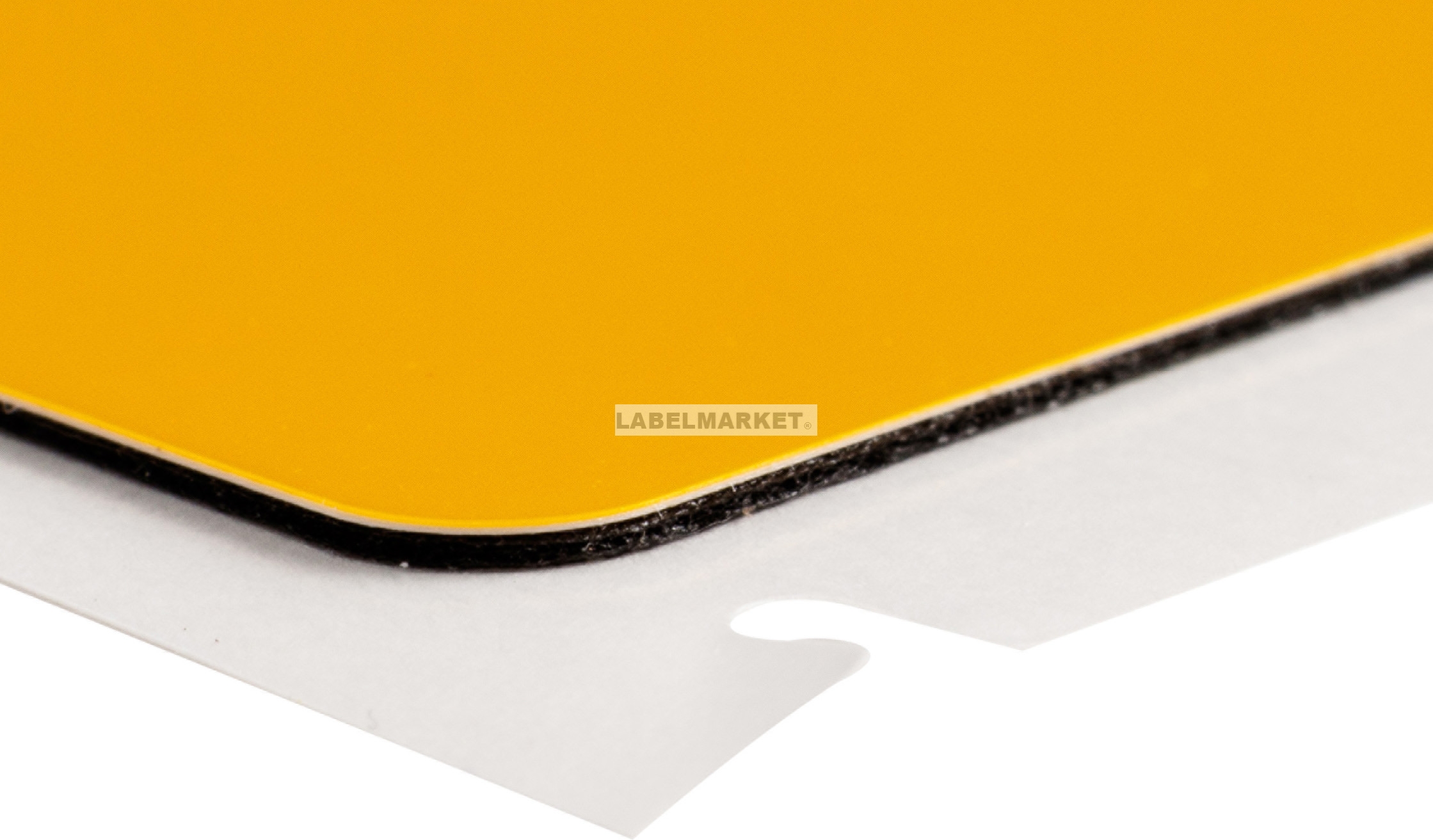 - Poliestrowa etykieta o wysokim połysku, wypukła, razem z maksymalnie agresywnym klejem (0,65mm)