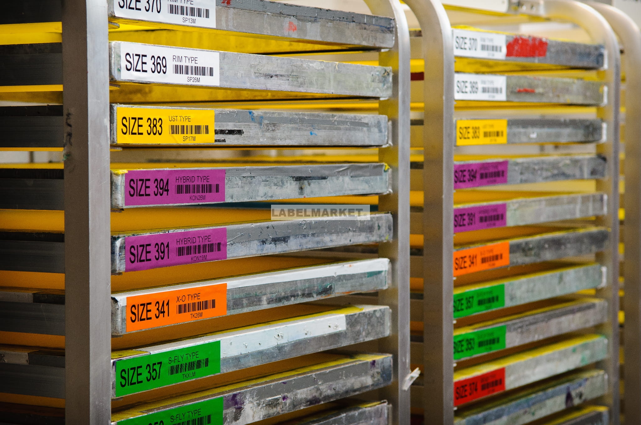 Etykieta występuje w postaci paska o szerokości 12,70mm i długości 6,40m w związku z czym konkretne etykiety jeden wymiar mogą mieć dowolny a drugi wynika z szerokości paska (12,70mm).