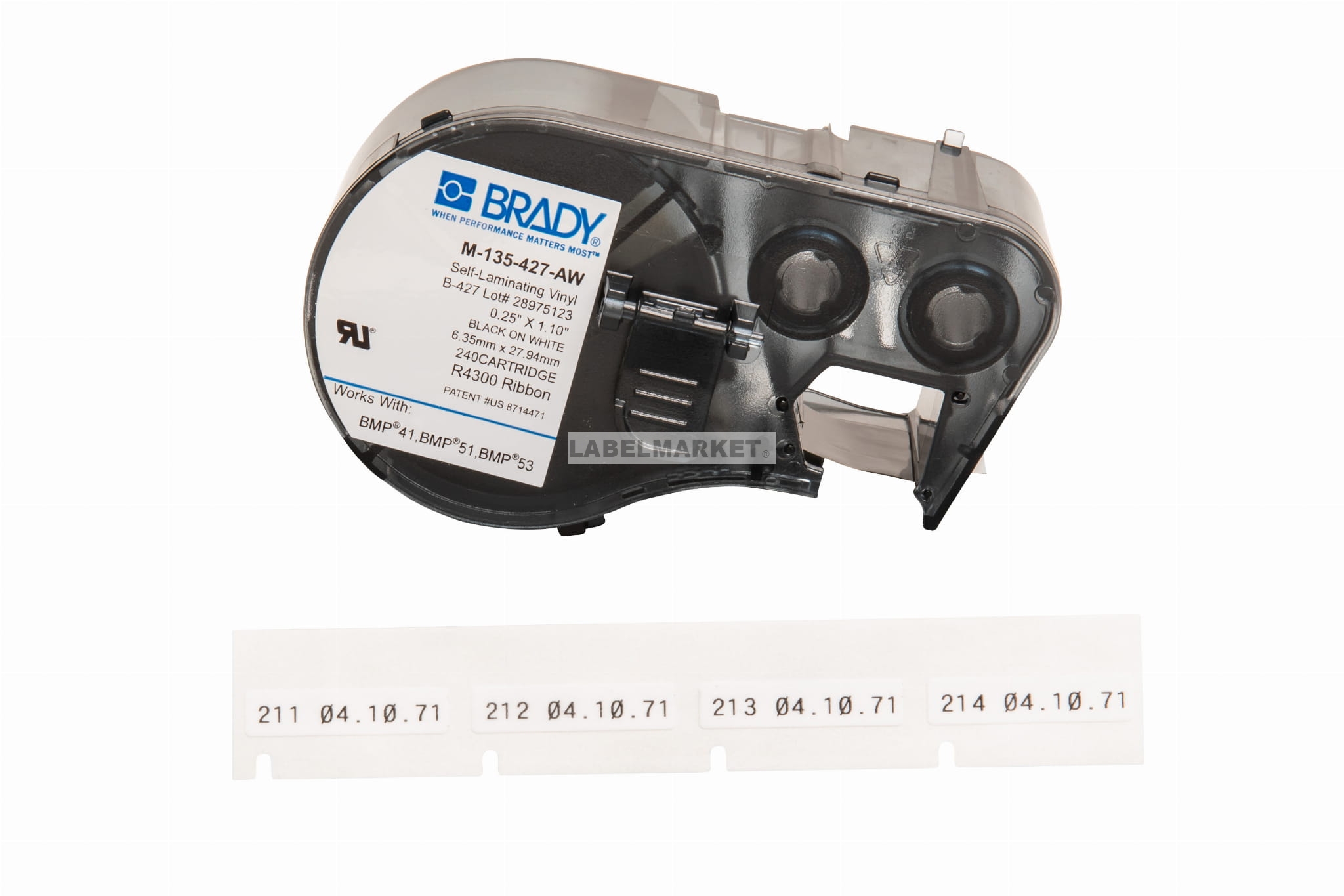 Najpopularniejszy materiał firmy Brady do oznaczania przewodów i kabli. Samolaminujący winyl z białym obszarem do zadrukowania i przezroczystym paskiem, którym można owinąć oznaczenie. Pasek ten działa jako dodatkowa powłoka chroniąca druk. Ponadprzeciętna odporność na ścieranie, działanie rozpuszczalników, wody, oleju i brudu.