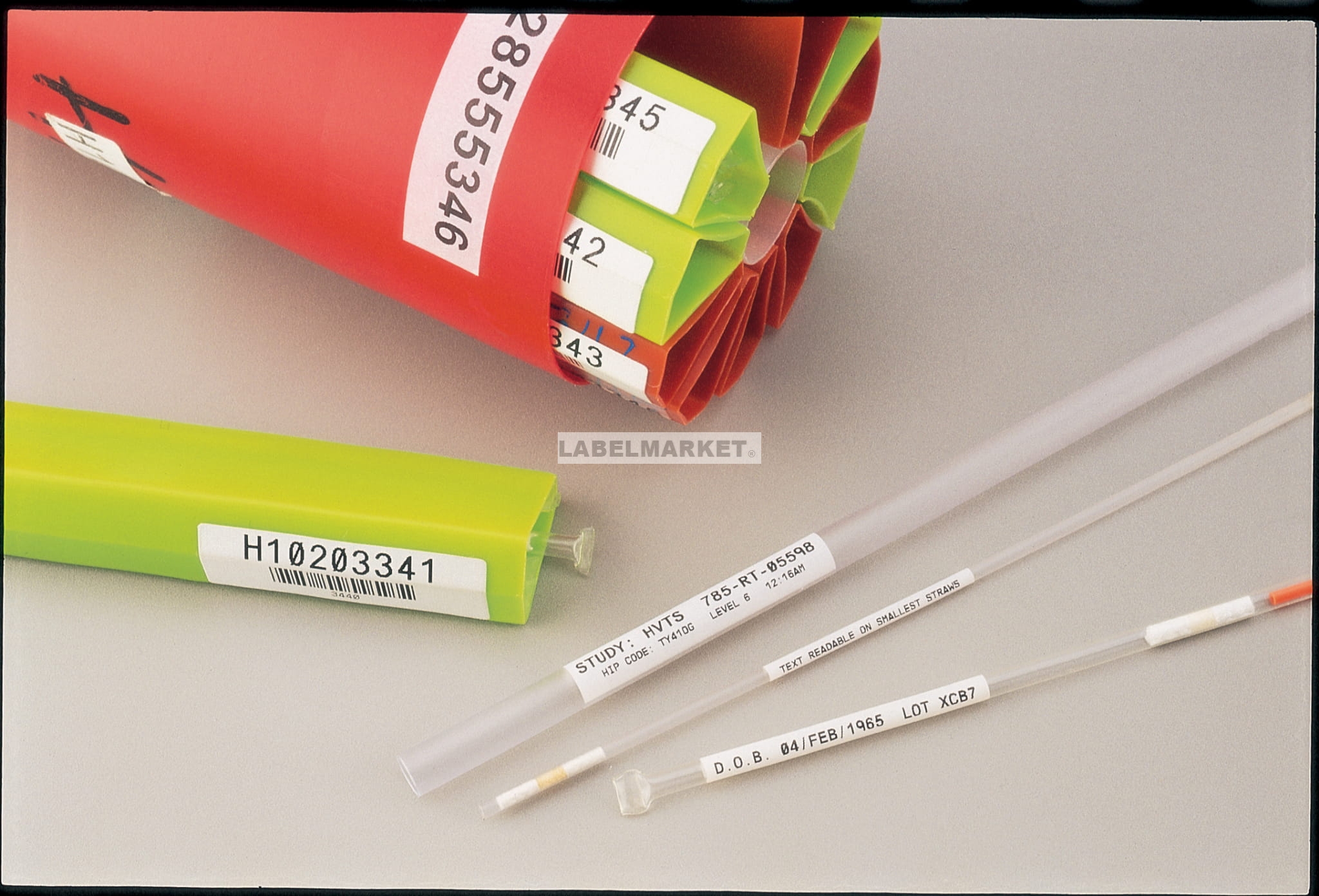 Samolaminujący winyl z białym obszarem do zadrukowania i przezroczystym paskiem, który można owinąć wokół wydrukowanego tekstu. Pasek ten działa jako dodatkowa powłoka chroniąca druk w chłodniach i przed działaniem ciekłego azotu. Wykrawane tak, aby pasowały do małych i dużych słomek oraz prętów laboratoryjnych.