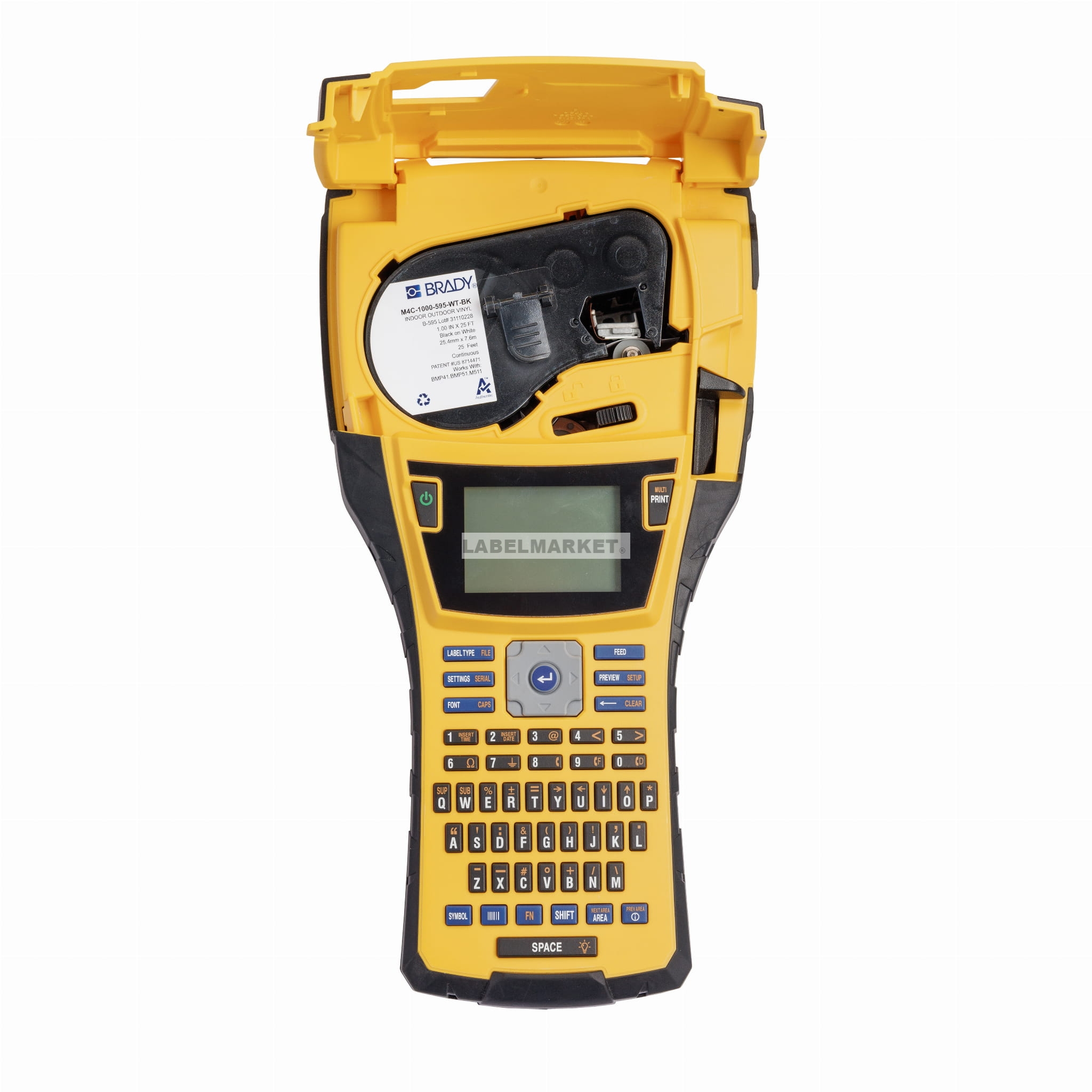 w kartonie z twardym kufrem, akumulatorem NiMH, zasilaczem sieciowym, kasetą z etykietami winylowymi B-595, magnesem, uchwytem, skróconą instrukcją obsługi, kablem USB oraz pakietem do podstawowego projektowania Brady Workstation, napędem USB ze sterownikiem i instrukcją obsługi.