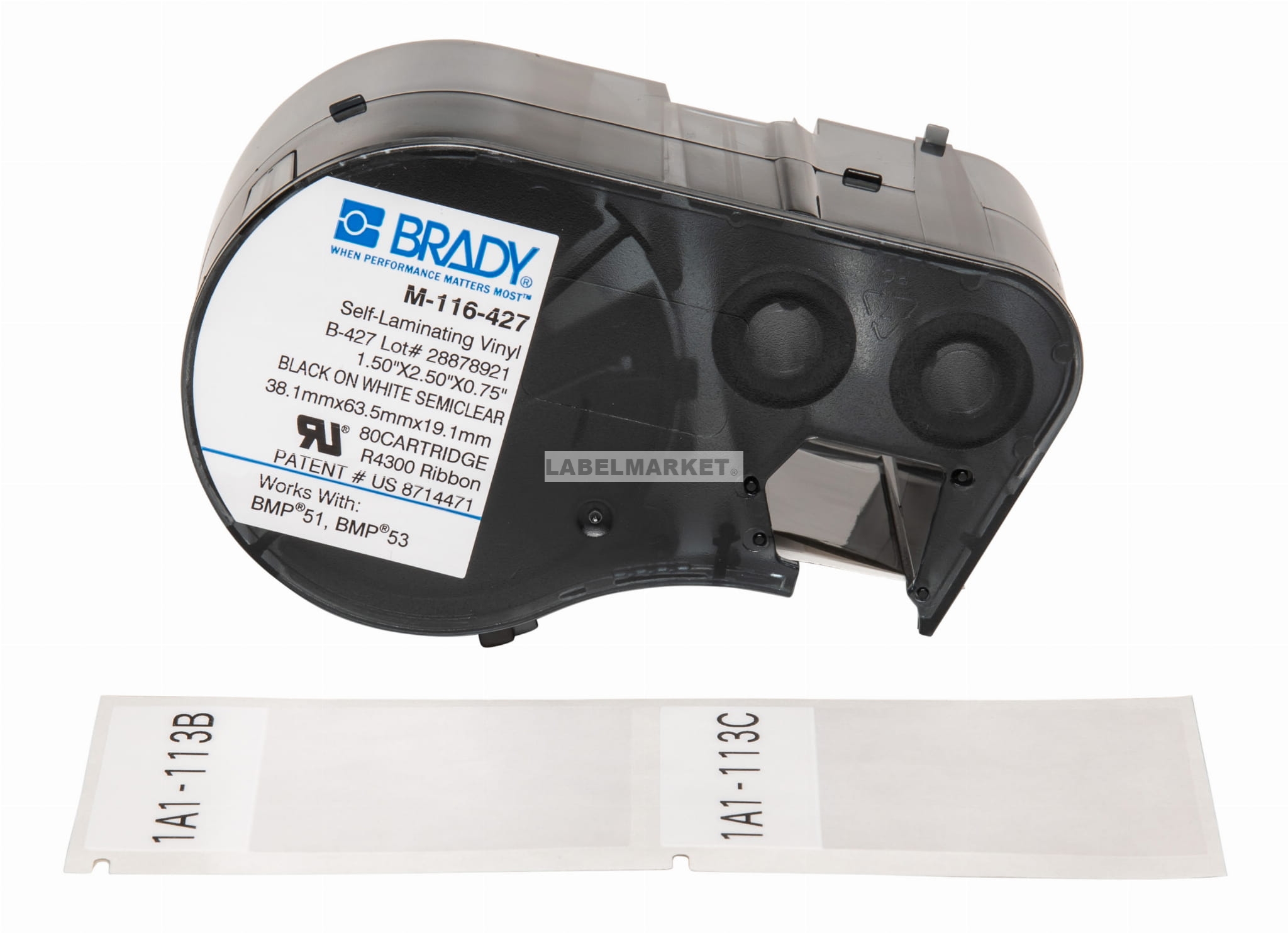 Najpopularniejszy materiał firmy Brady do oznaczania przewodów i kabli. Samolaminujący winyl z białym obszarem do zadrukowania i przezroczystym paskiem, którym można owinąć oznaczenie. Pasek ten działa jako dodatkowa powłoka chroniąca druk. Ponadprzeciętna odporność na ścieranie, działanie rozpuszczalników, wody, oleju i brudu.