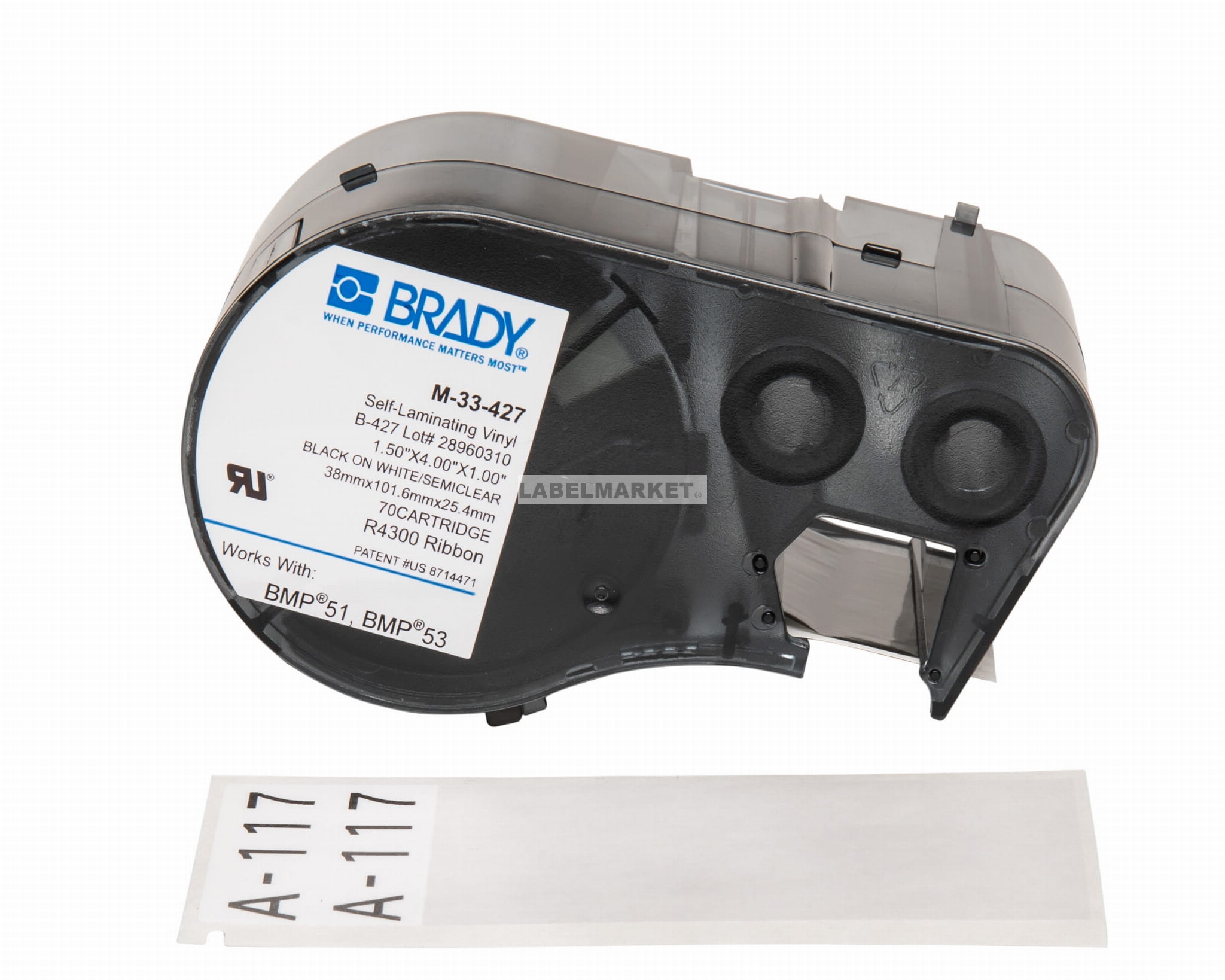 Najpopularniejszy materiał firmy Brady do oznaczania przewodów i kabli. Samolaminujący winyl z białym obszarem do zadrukowania i przezroczystym paskiem, którym można owinąć oznaczenie. Pasek ten działa jako dodatkowa powłoka chroniąca druk. Ponadprzeciętna odporność na ścieranie, działanie rozpuszczalników, wody, oleju i brudu.