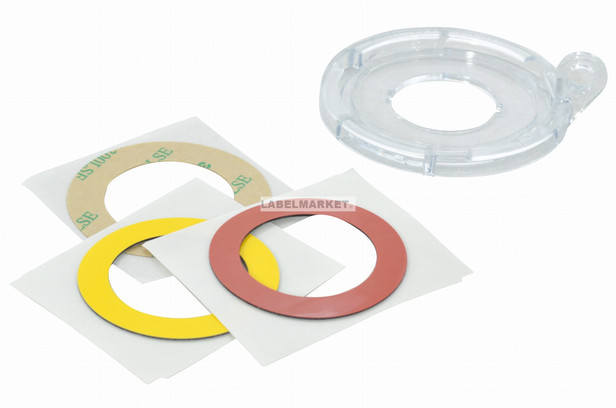 Sprzedawane z pięcioma przeźroczystymi etykietami, pięcioma czerwonymi etykietami i pięcioma żółtymi etykietami.