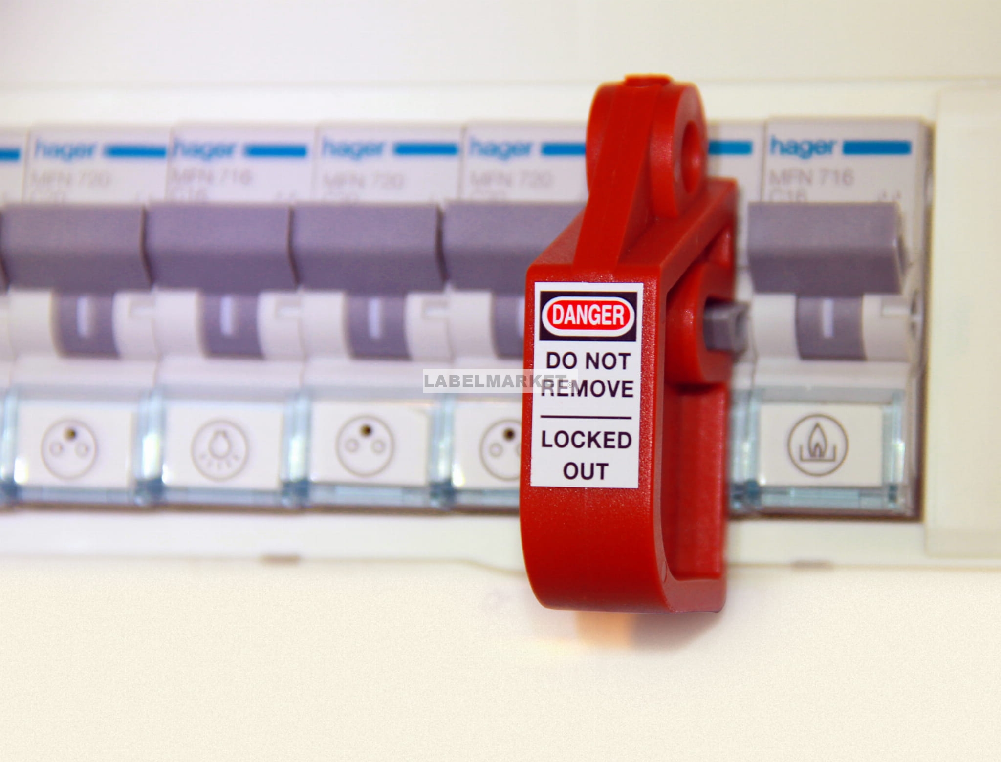 - Dołączona etykieta z napisem "DANGER DO NOT REMOVE LOCKED OUT"