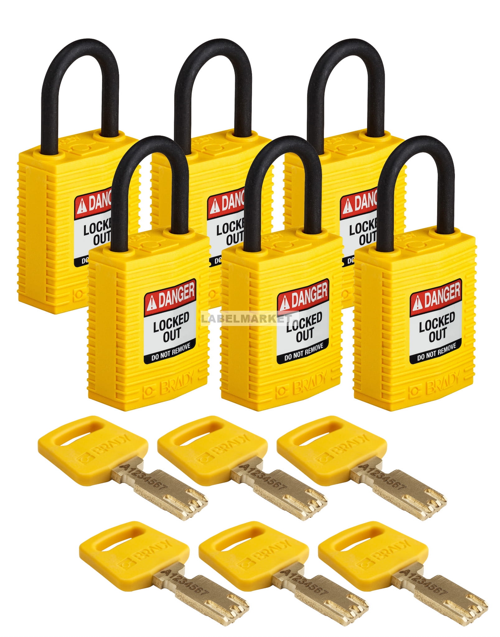 Brady kłódka SafeKey Nylon Compact - szekla polimerowa 25 mm różne klucze zestaw 6 szt. (150208)