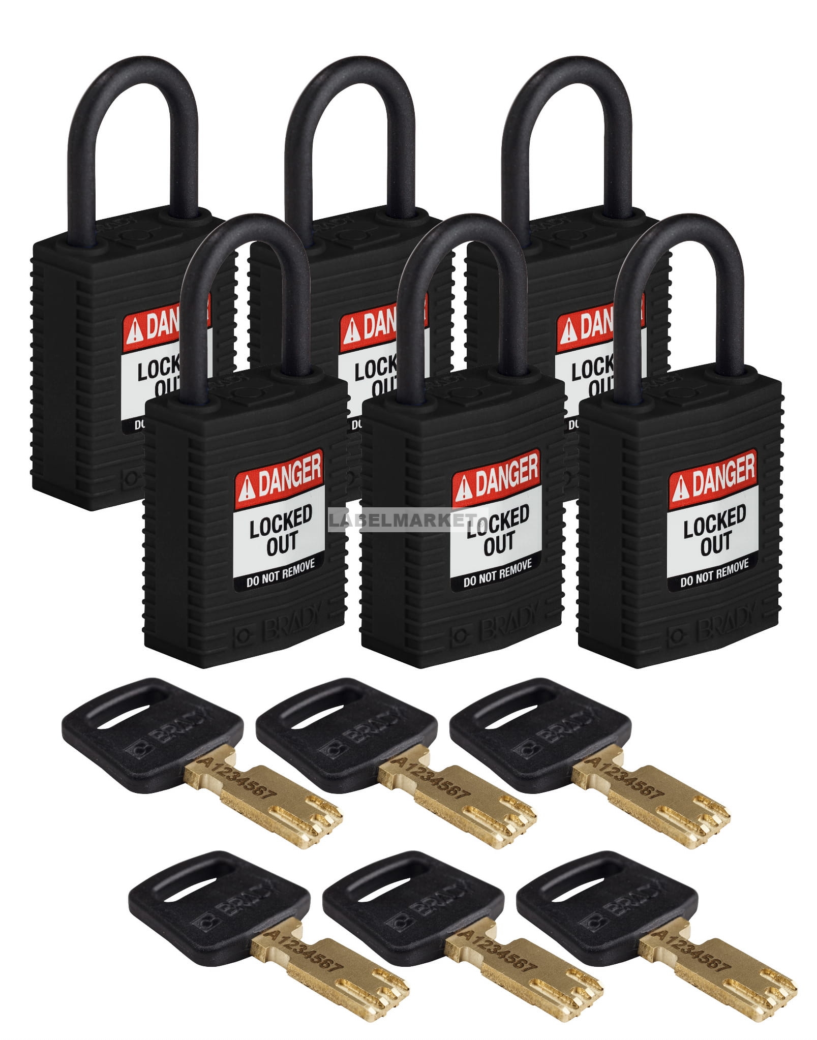 Brady kłódka SafeKey Nylon Compact - szekla polimerowa 25 mm różne klucze zestaw 6 szt. (150211)