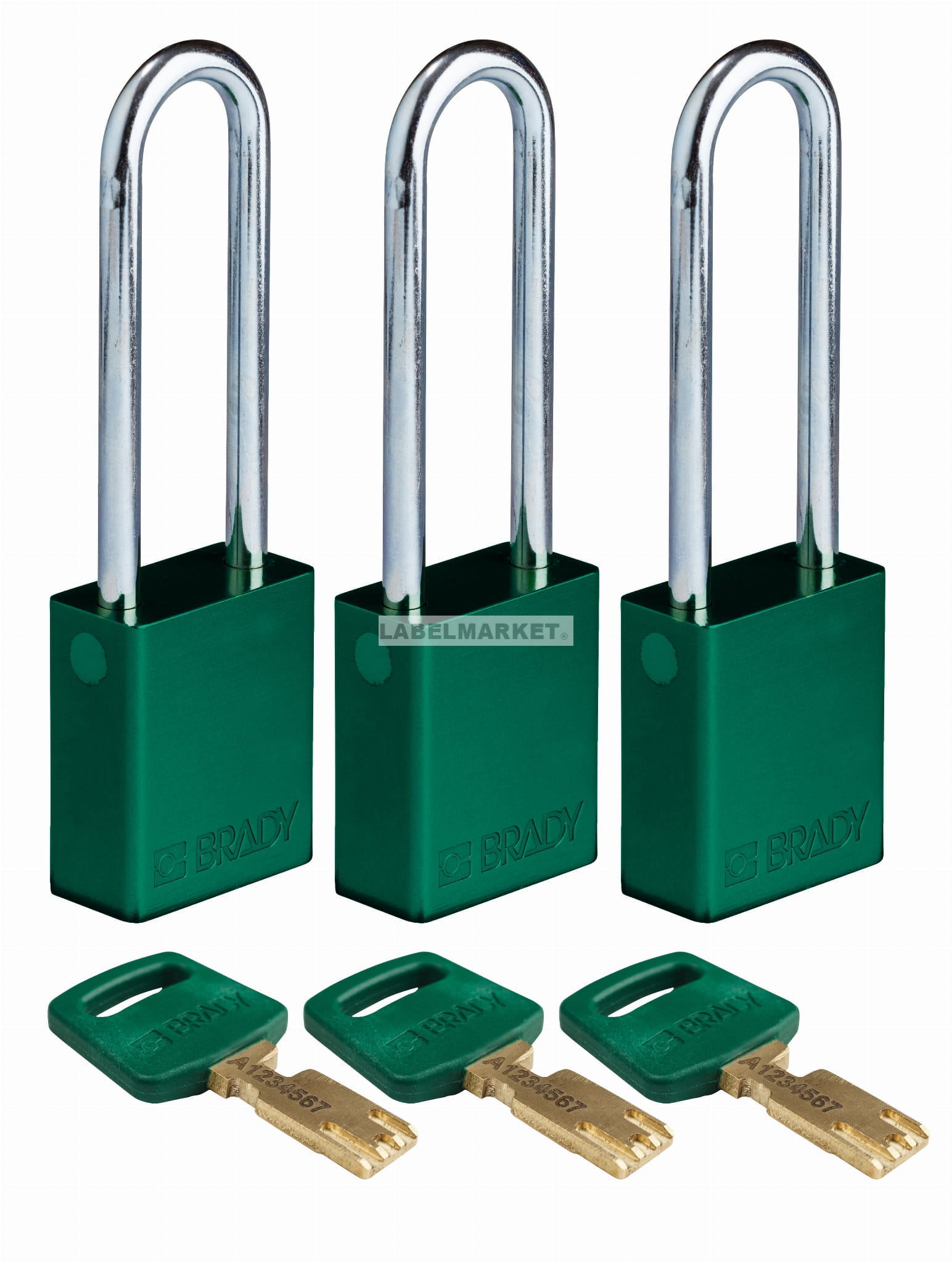 Brady kłódka SafeKey aluminium - szekla stalowa 76 mm jednakowe klucze zestaw 3 szt. (150238)
