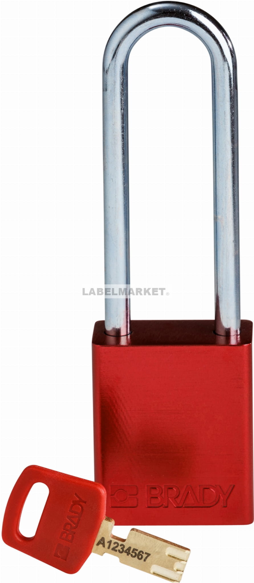 Brady kłódka SafeKey aluminium - szekla stalowa 76 mm różne klucze (150332)