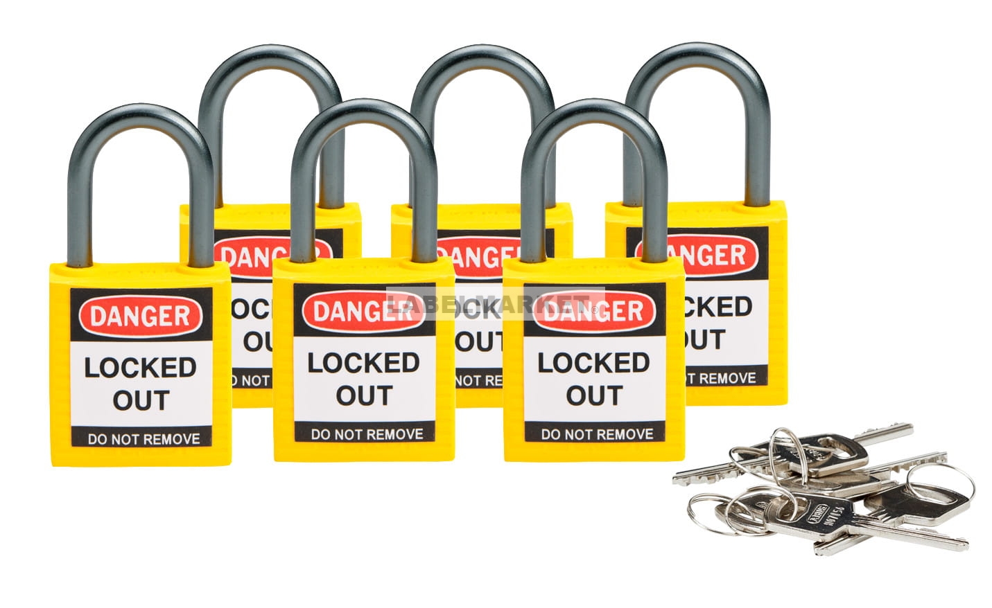Brady kłódka tradycyjna nylonowa kompaktowa - szekla aluminiowa 25 mm różne klucze zestaw 6 szt. (814117)