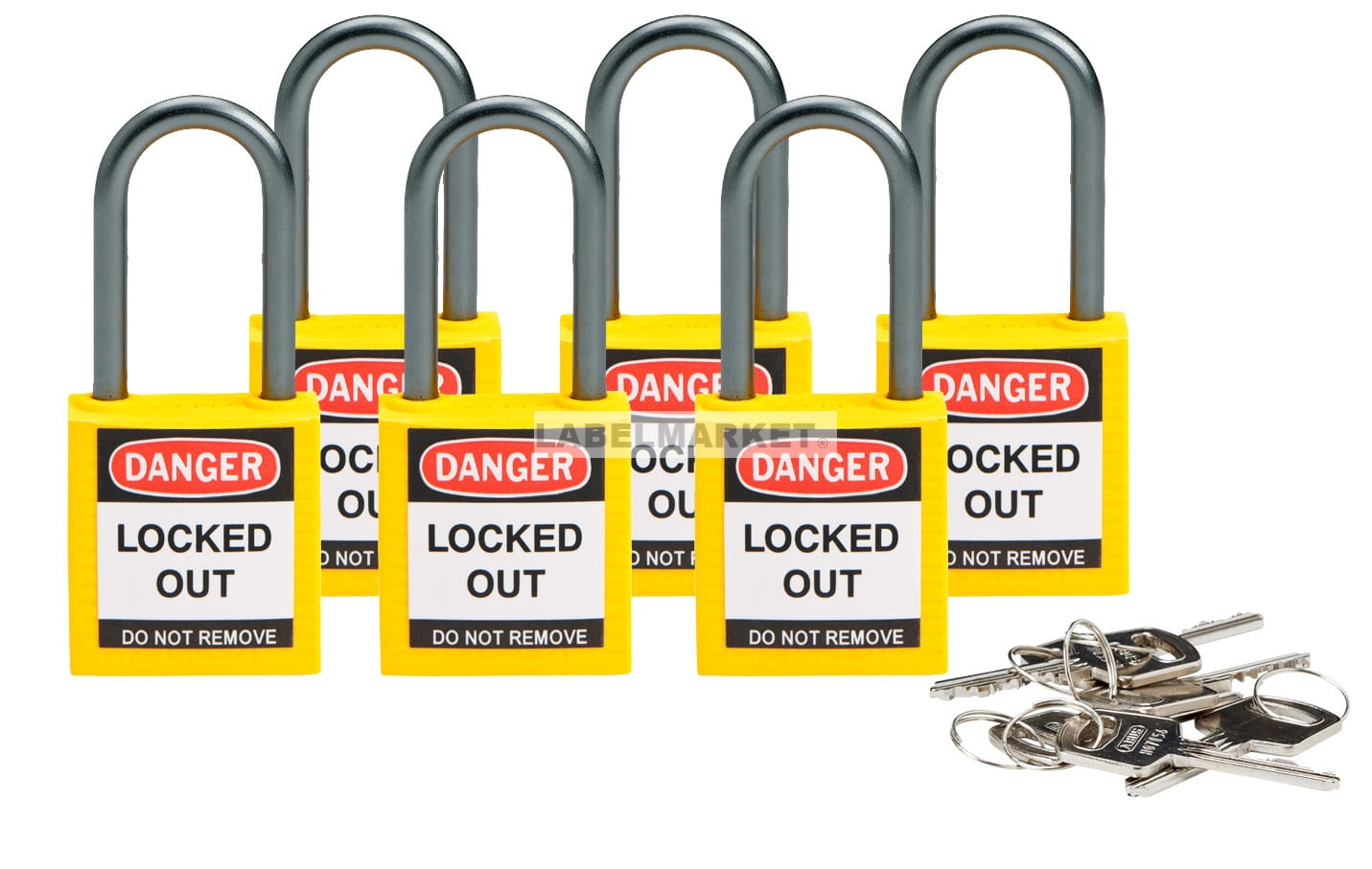 Brady kłódka tradycyjna nylonowa kompaktowa - szekla aluminiowa 38 mm różne klucze zestaw 6 szt. (814127)