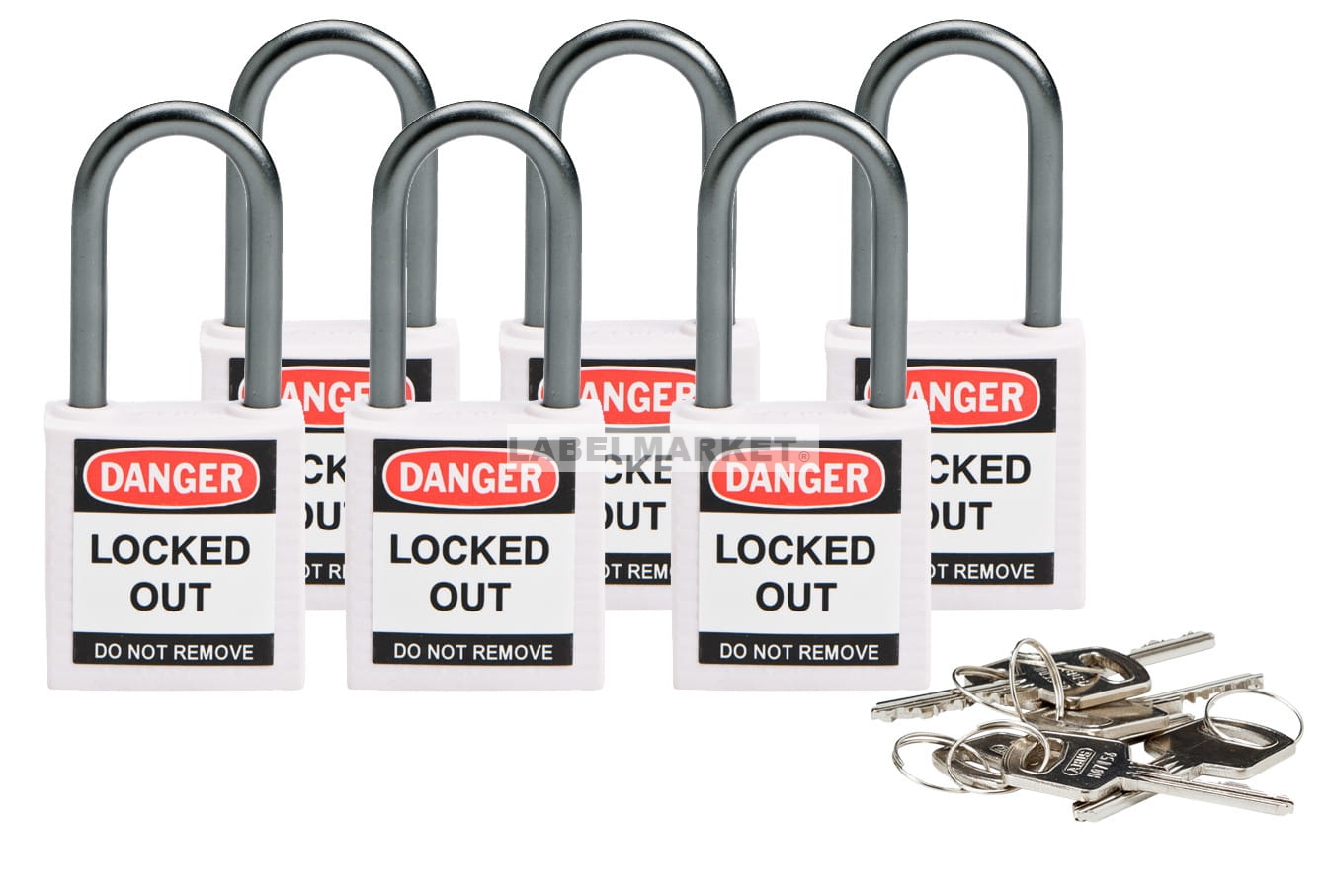 Brady kłódka tradycyjna nylonowa kompaktowa - szekla aluminiowa 38 mm różne klucze zestaw 6 szt. (814132)