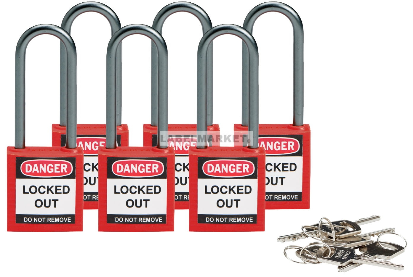 Brady kłódka tradycyjna nylonowa kompaktowa - szekla aluminiowa 50 mm różne klucze zestaw 6 szt. (814136)