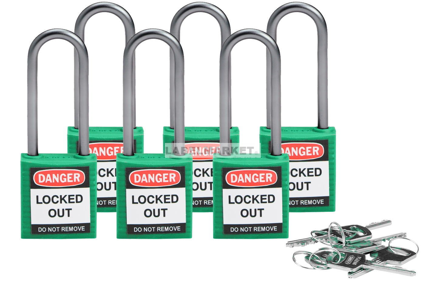 Brady kłódka tradycyjna nylonowa kompaktowa - szekla aluminiowa 50 mm różne klucze zestaw 6 szt. (814138)
