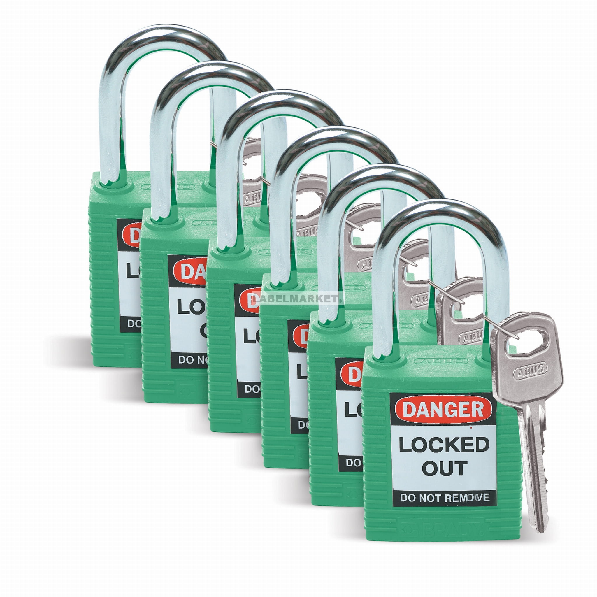 Brady kłódka tradycyjna nylonowa - szekla ze stali hartowanej 38 mm różne klucze zestaw 6 szt (051345)
