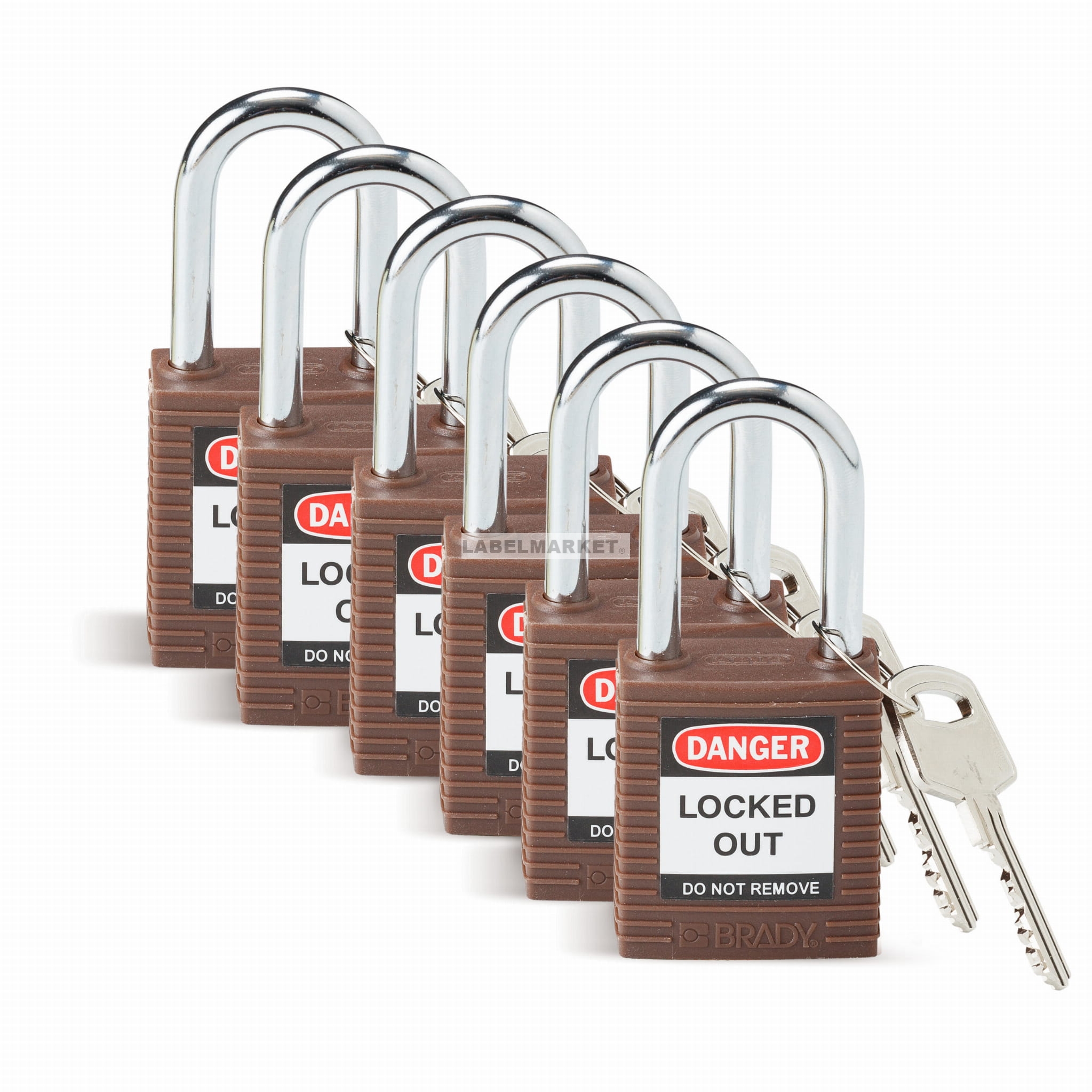 Brady kłódka tradycyjna nylonowa - szekla ze stali hartowanej 38 mm różne klucze zestaw 6 szt (813636)