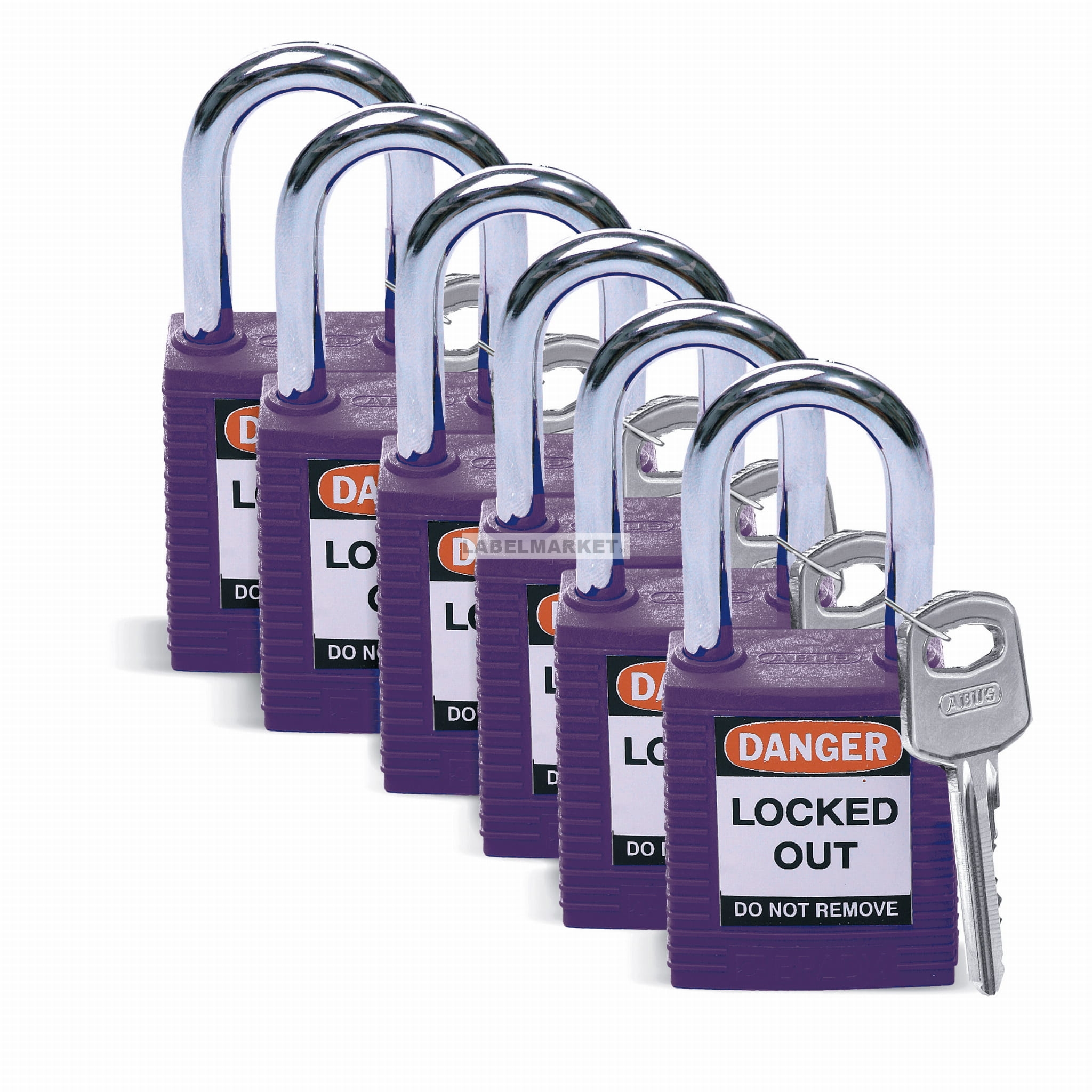 Brady kłódka tradycyjna nylonowa - szekla ze stali hartowanej 38 mm różne klucze zestaw 6 szt (813637)