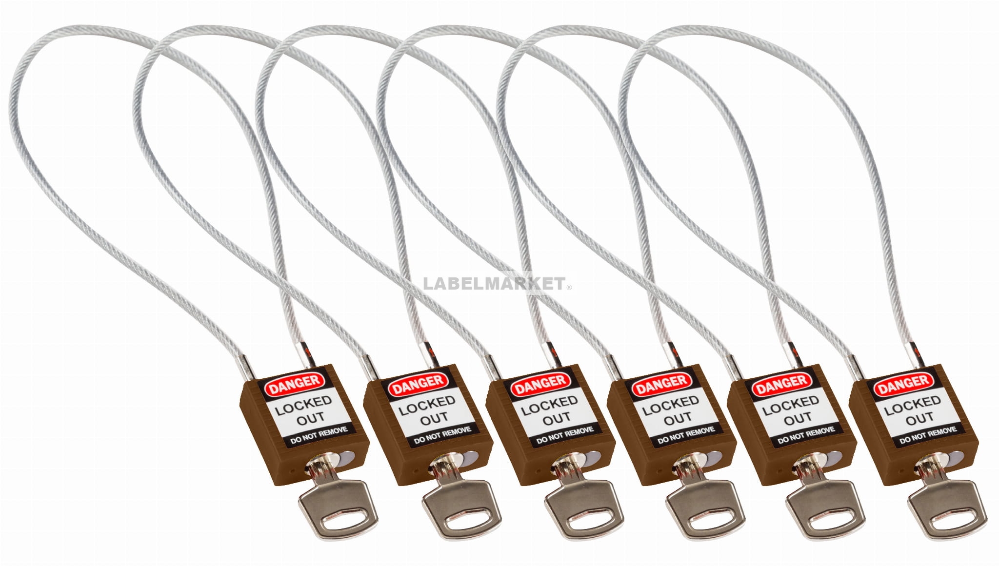 Brady kłódka tradycyjna nylonowa z linką - linka o długości 40 cm jednakowe klucze zestaw 6 szt. (195953)