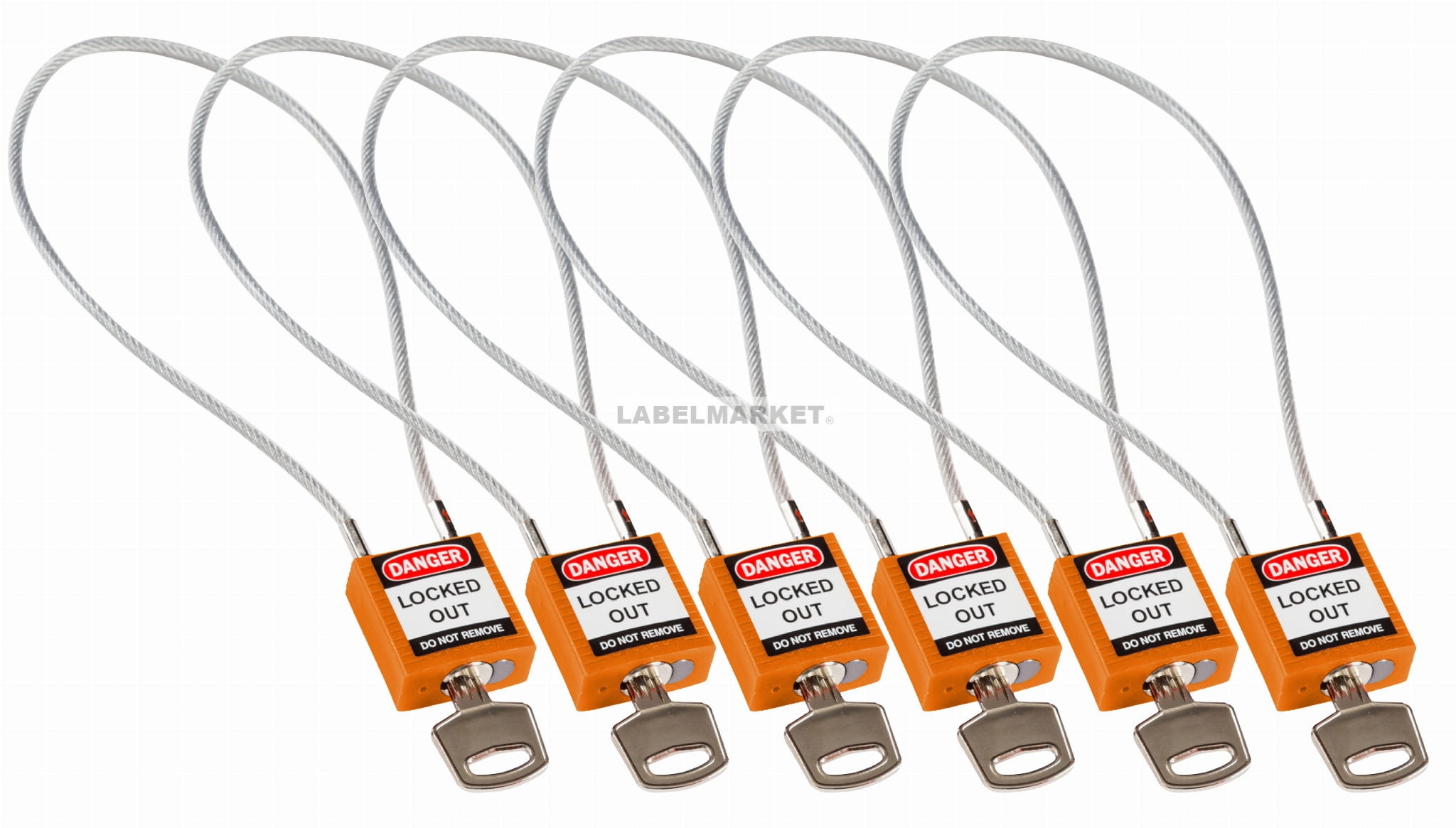 Brady kłódka tradycyjna nylonowa z linką - linka o długości 40 cm różne klucze zestaw 6 szt. (195989)