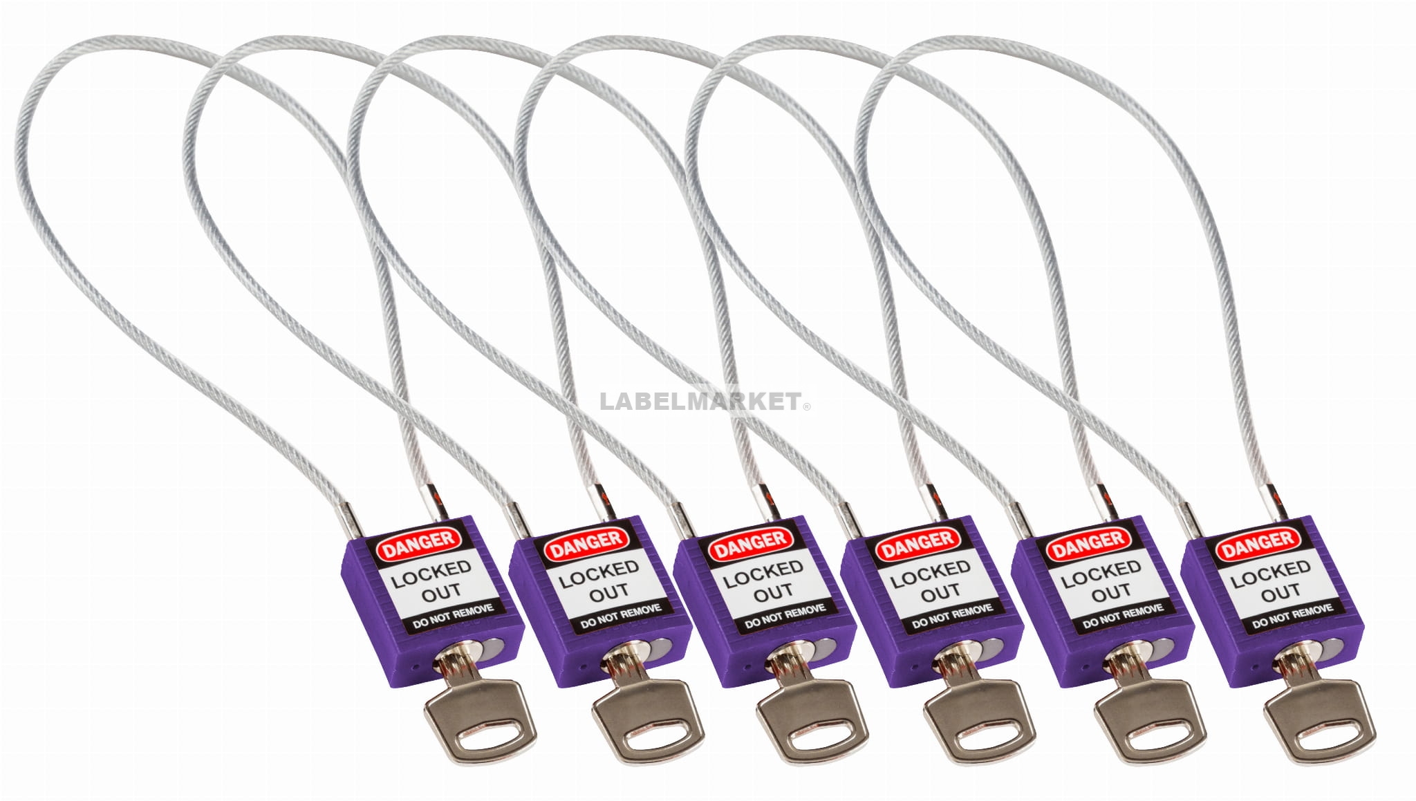 Brady kłódka tradycyjna nylonowa z linką - linka o długości 40 cm różne klucze zestaw 6 szt. (195990)