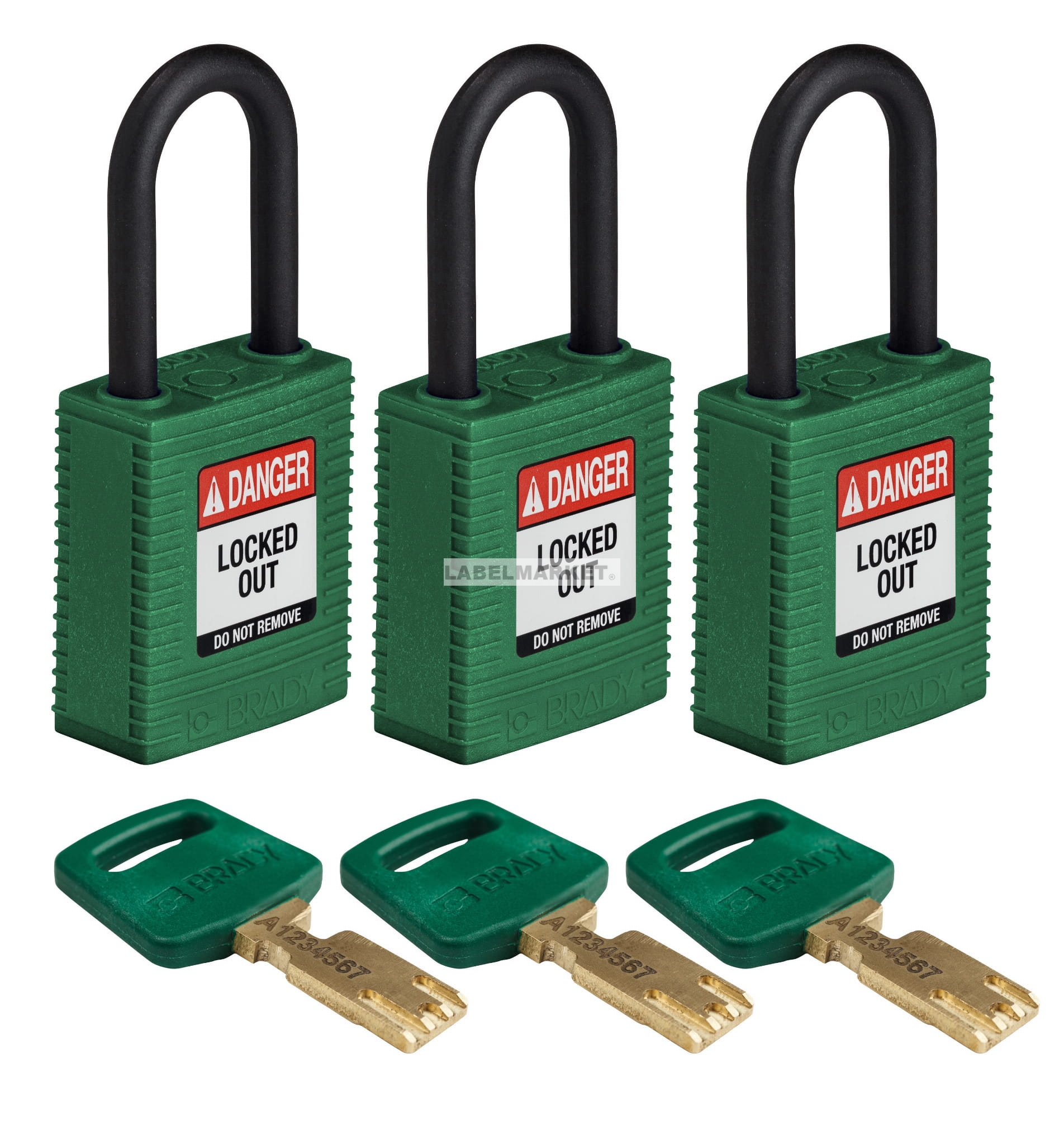 Brady kłódki SafeKey Nylon - szekla z tworzywa sztucznego 38 mm jednakowe klucze zestaw 3 szt (150223)