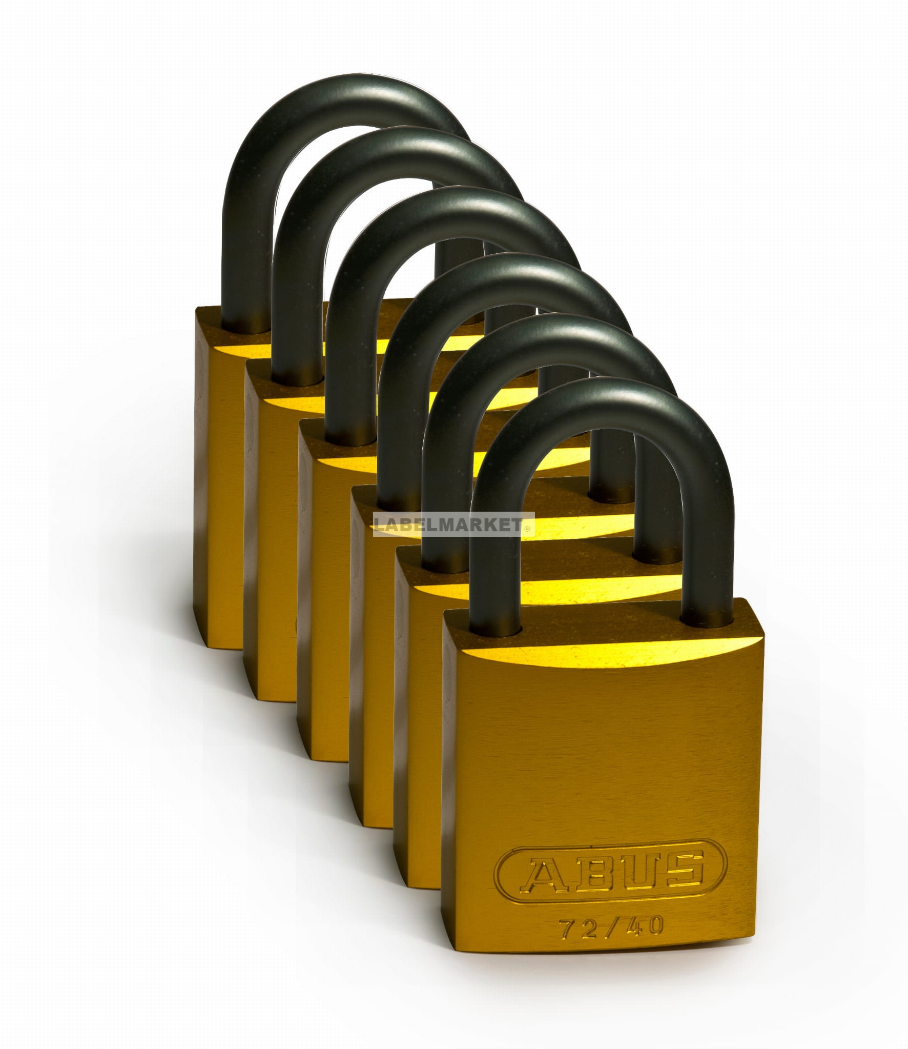 Tradycyjna pełna kłódka aluminiowa Brady - szekla z litego aluminium 25 mm różne klucze komplet 6 szt.