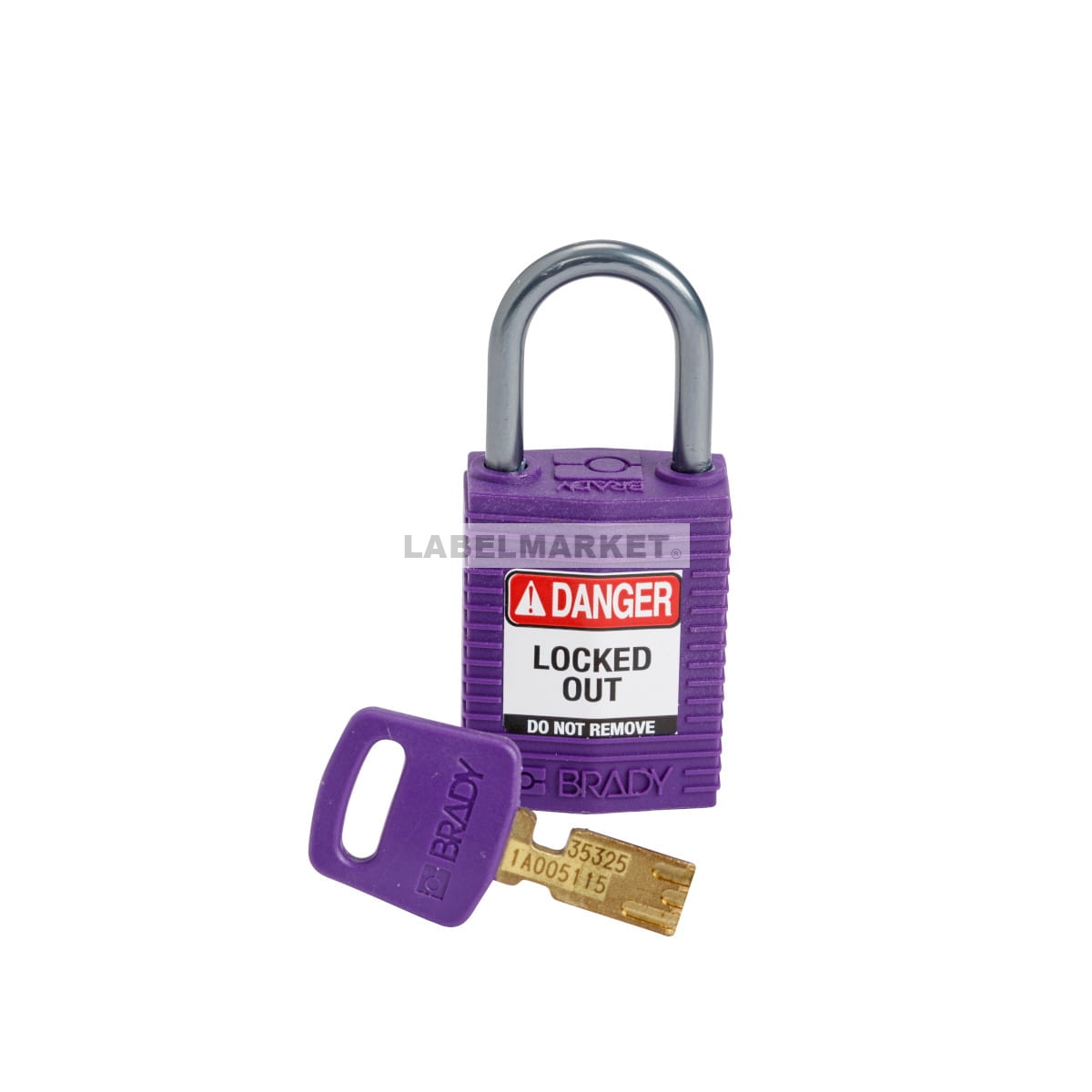 Kłódka SafeKey Nylon Compact Brady - szekla aluminiowa 25 mm różne klucze FIOLETOWA (152161)