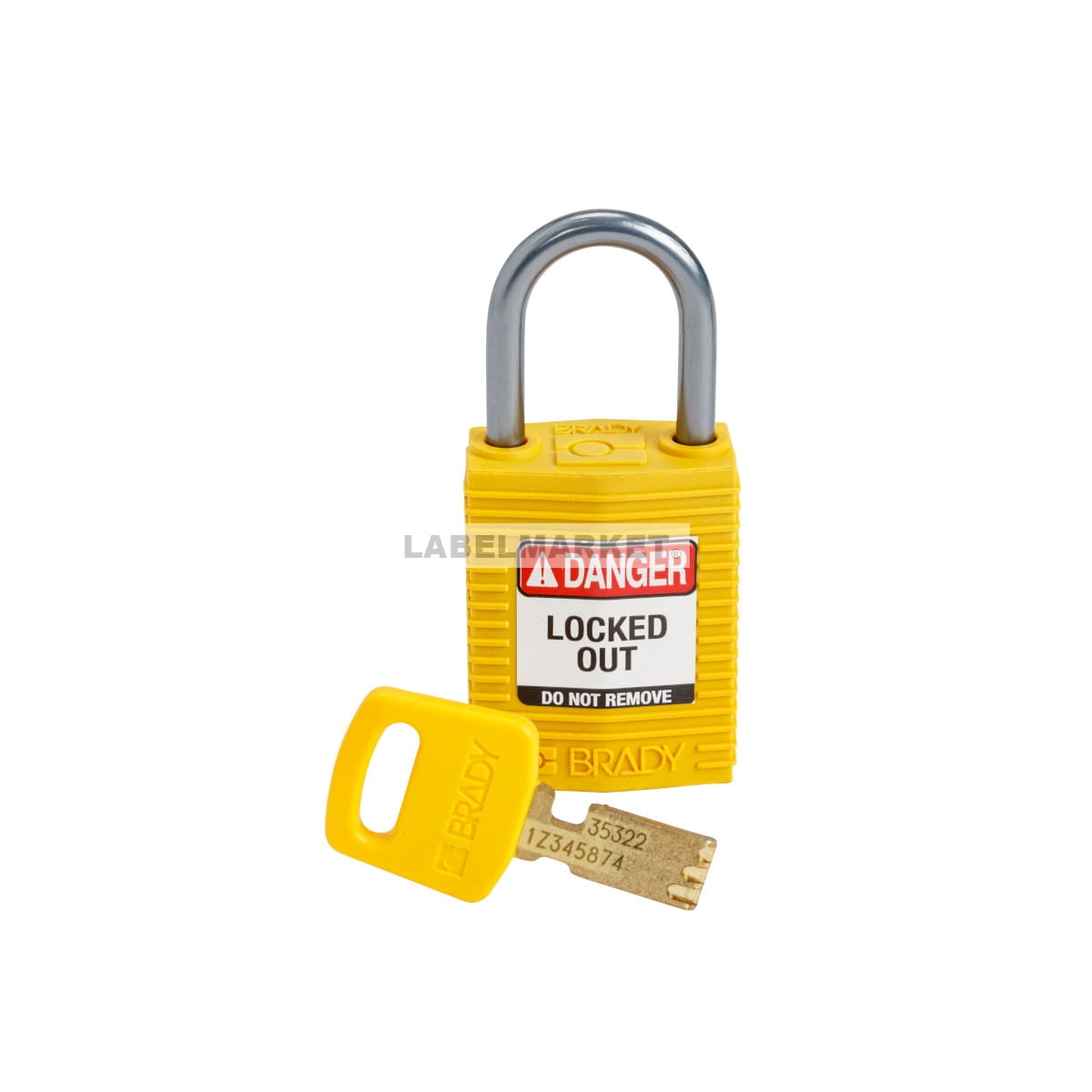 Kłódka SafeKey Nylon Compact Brady - szekla aluminiowa 25 mm różne klucze ŻÓŁTA (152156)