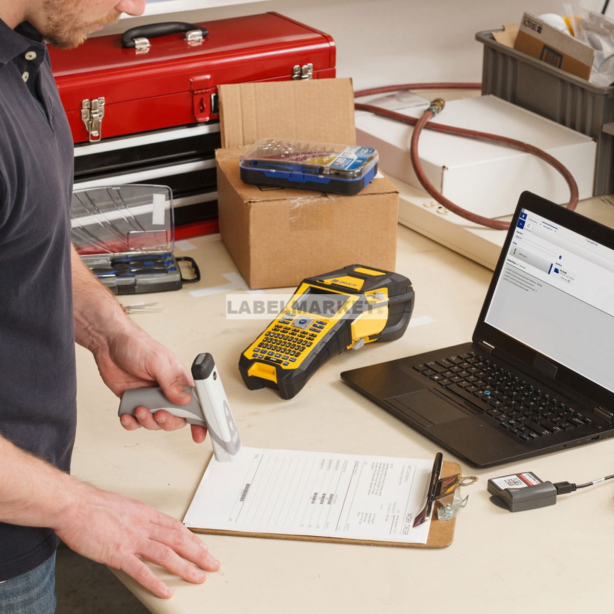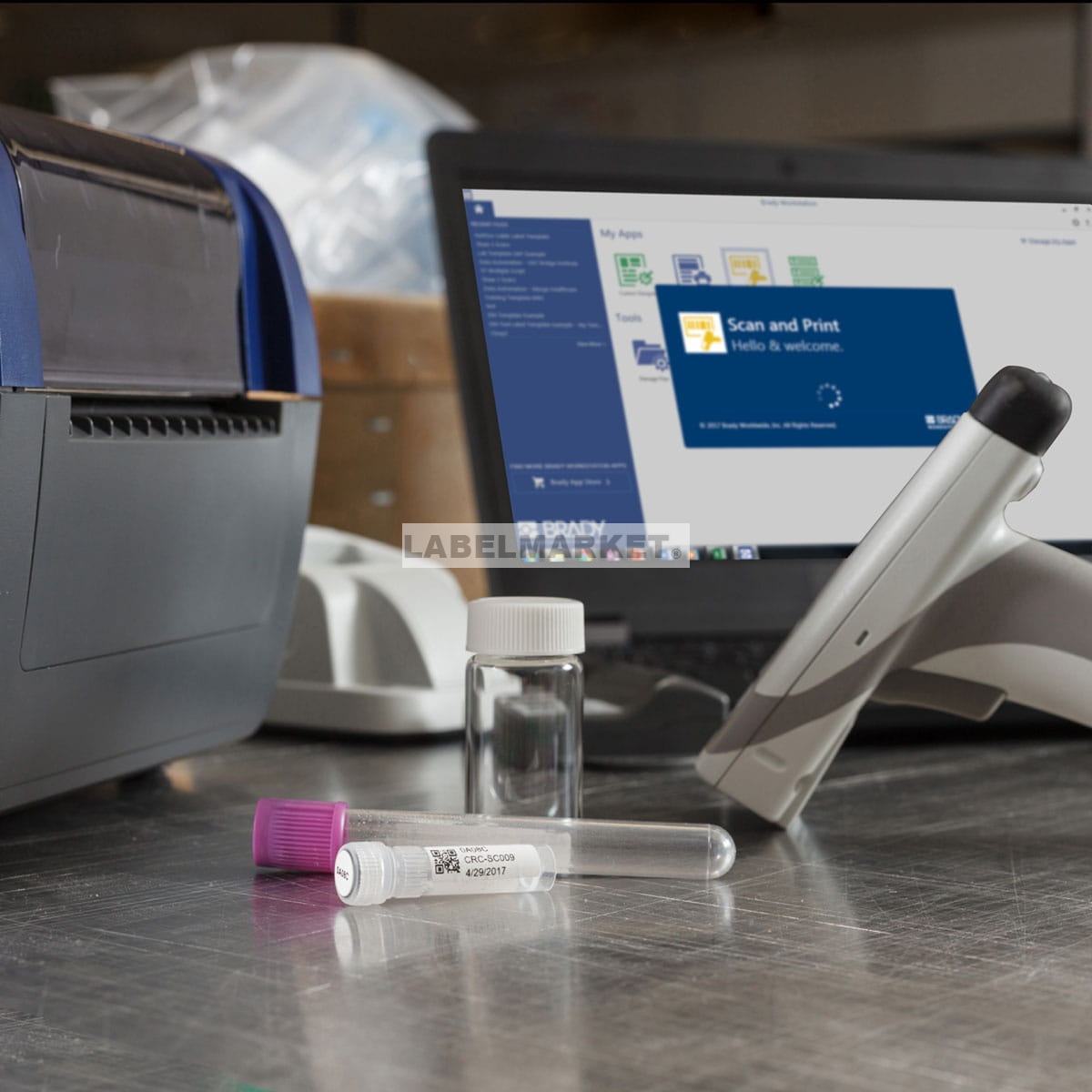 Za pomocą pakietu do skanowania i drukowania możesz usprawnić schematy pracy etykietowania produkcyjnego, aby zmaksymalizować wydajność drukowania etykiet i zredukować pomyłki na etykietach. Pakiet ten umożliwia pobieranie danych ze skanera kodów kreskowych, klawiatury lub niestandardowego skryptu w celu szybkiego wypełniania szablonów etykiet w ramach schematu pracy etykietowania. Ten pakiet może zaspokoić Twoje potrzeby związane na przykład z replikacją etykiet do próbek laboratoryjnych, etykietowaniem dostarczonych części na potrzeby montażu produktu albo etykietowaniem produktów na podstawie zleceń pracy. Aby uzyskać kompletne rozwiązanie, powiąż oprogramowanie skanuj i drukuj z urządzeniem skanującym kody kreskowe oraz z drukarką Brady.